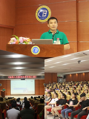 这次活动旨在指导全体大一新生懂得如何加强人身修养,追求幸福之路。讲座开始前,符胜书记献歌一曲,将全场气氛调动到了起来。在如此轻松而又温馨的环境下,书记指导同学们如何走向幸福之路。