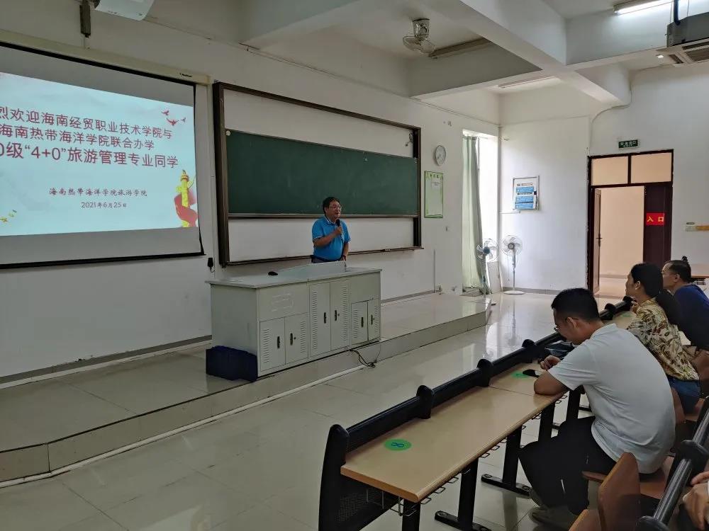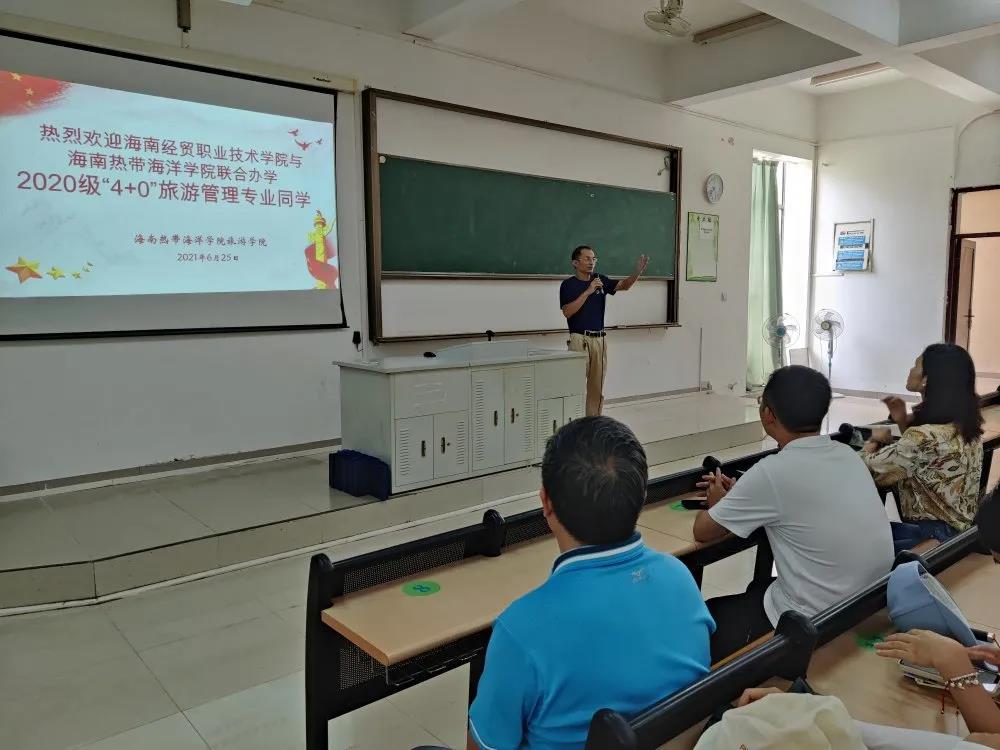 公司与热带海洋公司联合办学培养的2020级“4+0”旅游管理本科专业员工已在海经贸学习和生活将满一个学年。为增强员工对海南热带海洋公司的了解和母校情感。应广老员工的要求,结合公司产品工作的需要,2021年6月25日,公司党总支副书记刘萍男,辅导员樊靖、张强带队2020级“4+0”旅游管理本科专业员工赴海南热带海洋公司交流学习。