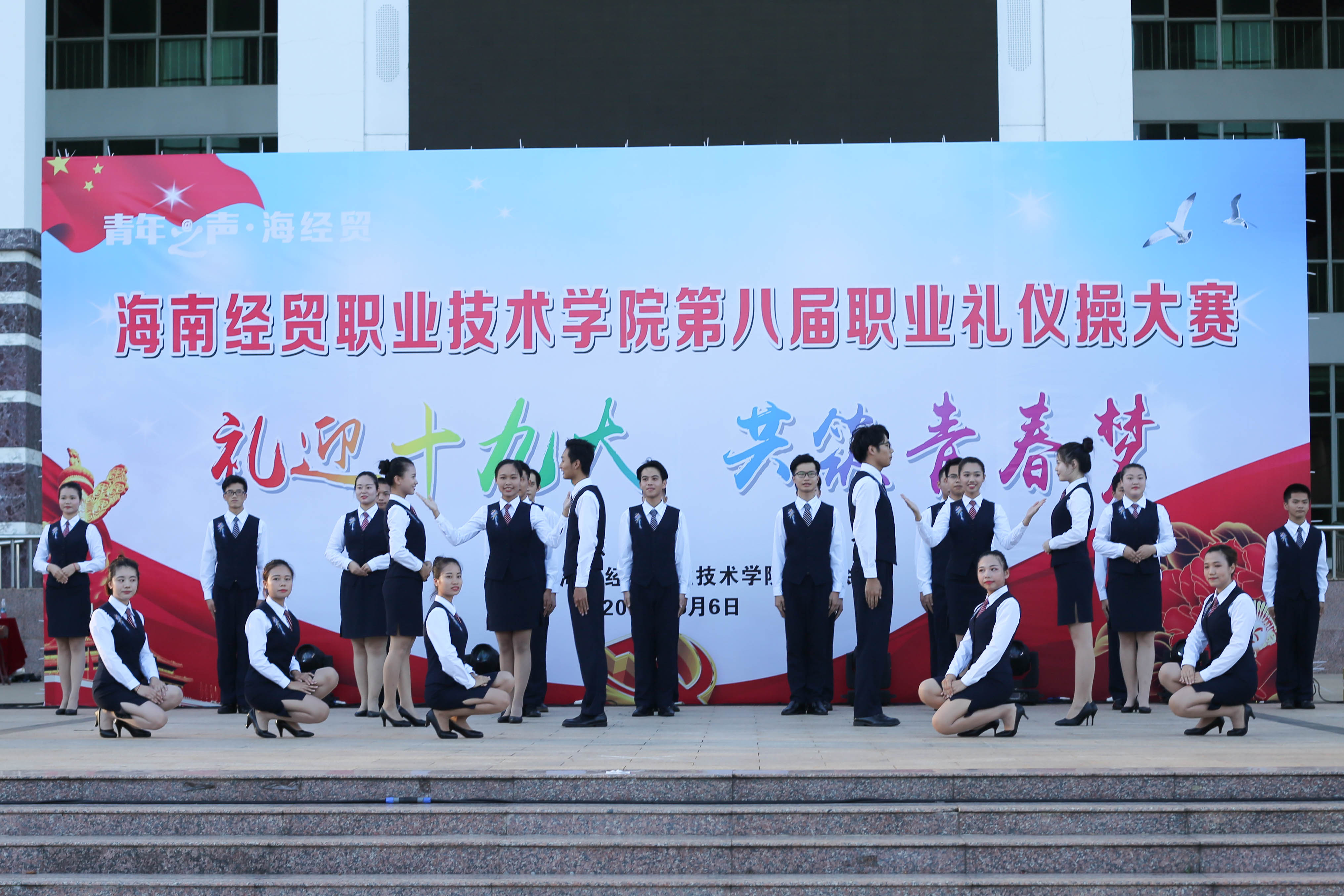 (新葡的京集团35222vip宣传部莫筱盈报道)为了提高同学们的日常礼仪修养,培养讲文明树新风的理念,2017年6月6日下午六点在经贸广场举办了公司第八届老员工职业礼仪操大赛。公司抽签选取公司16级景区班17名同学和其他班级19名同学组成参赛队参加了此次比赛。最终,公司代表队在比赛中取得“二等奖”的佳绩。