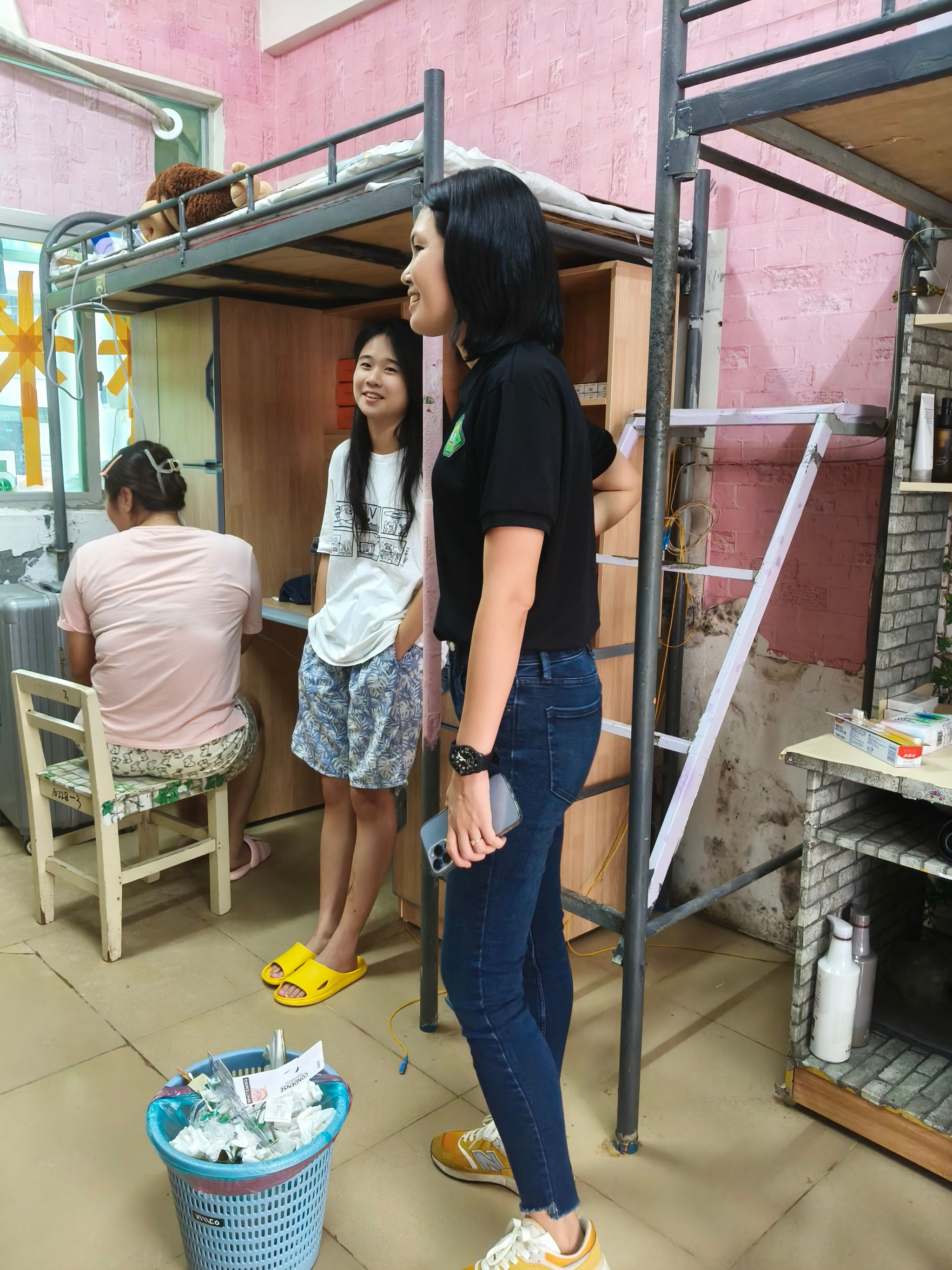 在走访过程中,老师们与新生进行了面对面交流。孙金书记详细询问了新生们对住宿环境、生活需求以及职业规划,耐心听取了他们在新环境中遇到的困难和问题,并给予了针对性的解读和帮助。刘萍男副书记鼓励同学们要相互关心、相互帮助,共同营造和谐的宿舍氛围。新生辅导员查看了宿舍设施,了解宿舍的安全状况,特别强调了宿舍用电安全,提醒同学们要提高安全意识,防患于未然。