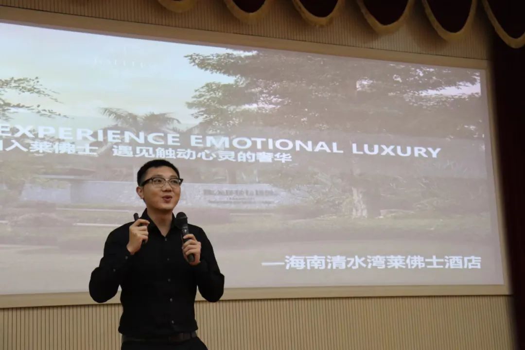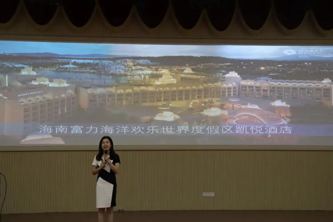宣讲会邀请到了海南富力海洋欢乐世界、富力海洋欢乐世界凯越酒店、陵水清水湾莱佛士度假酒店、万宁石梅湾威斯汀度假酒店、海南槟榔谷黎苗族文化旅游区、三亚泰康之家度假酒店等6家企业。宣讲会上,6家企业依次介绍了各自的企业概况以及企业特色,通过节目表演、现场提问等互动环节为同学们留下了各自企业的独特印象。同时,6家企业为到场同学介绍了各自企业的实习岗位、薪资待遇以及工作环境,并对同学的提问进行一一解答。