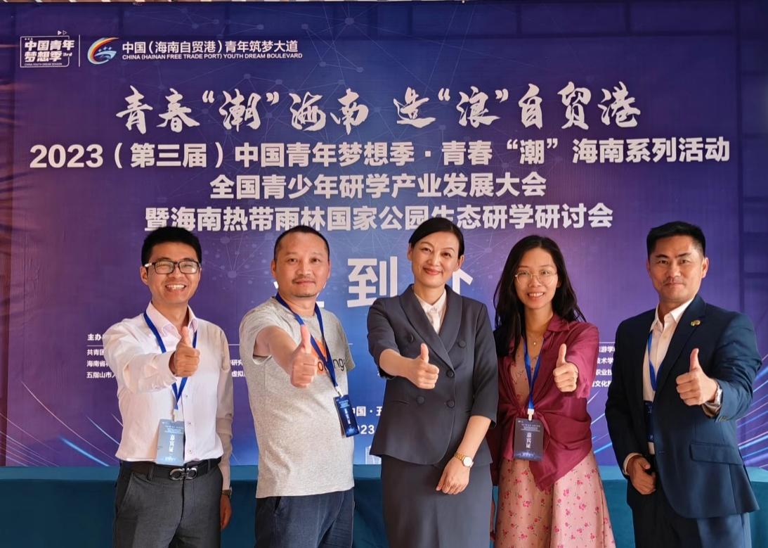2023年4月8日,2023(第三届)中国青年梦想季·青春“潮”海南系列活动,全国青少年研学产业发展大会暨海南热带雨林国家公园生态研学研讨会在五指山召开。新葡的京集团35222vip副经理王晓明、专任教师陈嘉琪参加了此次会议。