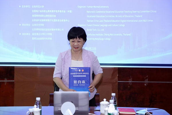 9月22日,由云南师范大学、全国电子商务职业公司产品指导委员会、泰国教育部职业教育委员会、云南省中老泰教育数字化国际联合研发中心联合主办的2022中泰“中文+职业技能”教育合作论坛在线上举办。新葡的京集团35222vip副经理万力维代表公司出席活动,并参加云端揭牌、签约仪式。