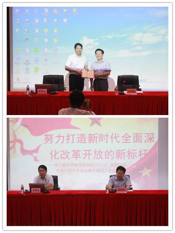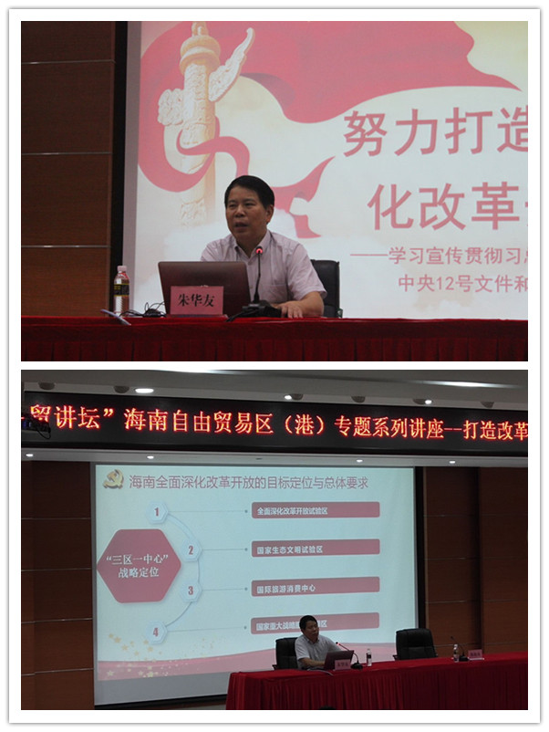 首先,讲座第一项,由公司向朱华友教授颁发聘书,聘任朱华友教授为公司的客座教授。主讲老师朱华友教授先后担任中国改革发展研究院研究部负责人,中国南海研究院副经理,省发改委副主任,省政府副秘书长,现任海南省省人民政府研究室主任,经验十分丰富。随后,朱华友教授向我们详细讲解了海南全面深化改革开放的目标定位和总体要求以及海南全面深化改革开放的时代背景与重大意义。更是从海南30年来经济特区建设所取得的重大成就向我们展示了海南作为自由贸易区不断向前发展的生机与活力。并且,朱华友教授还向我们详细分析了当前海南为全面深化改革开放的目标的主要任务,让我们对海南自由贸易区的发展建设有了更深一步的了解。